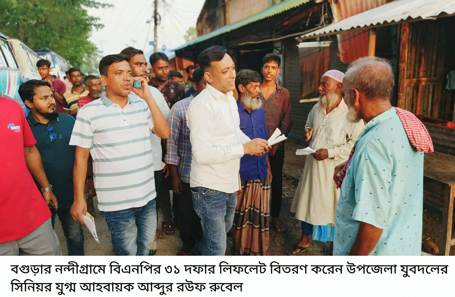 বগুড়ার নন্দীগ্রামে বিএনপির ভারপ্রাপ্ত চেয়ারম্যান তারেক রহমান উত্থাপিত রাষ্ট্রকাঠামো মেরামতের রূপরেখা ৩১ দফার প্রচারণায় গ্রামীণ জনপদে ছুটছে যুবদল। তৃণমূল