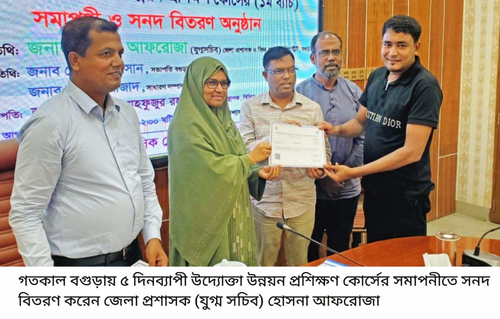 বগুড়ায় ৫ দিনব্যাপী উদ্যোক্তা উন্নয়ন প্রশিক্ষণ কোর্সের সমাপনী ও সনদ বিতরণ করা হয়েছে। উদ্যোক্তারা তাদের প্রতিষ্ঠানের বিপণন, উৎপাদন, সংগঠন