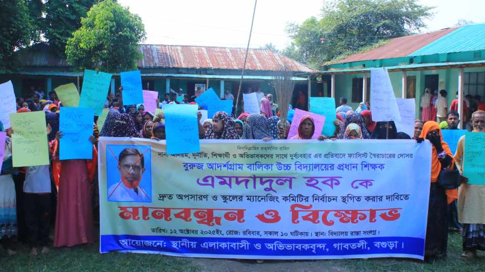 প্রধান শিক্ষকের অপসারণের দাবিতে গাবতলীতে বিক্ষোভ ও ঝাড়ু মিছিল