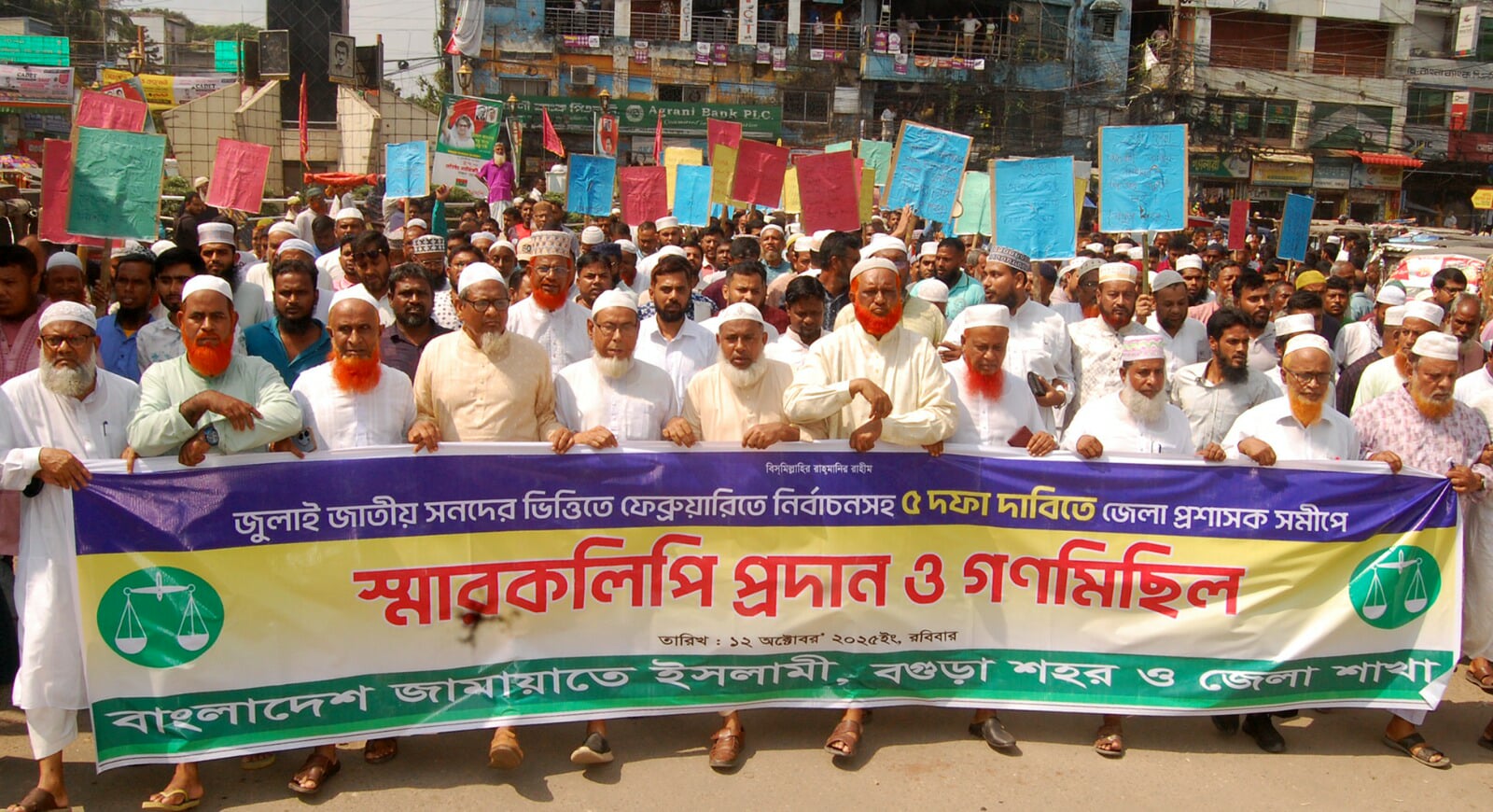জুলাই সনদের ভিত্তিতে আগামী ফেব্রুয়ারিতে জাতীয় সংসদ নির্বাচনসহ ৫ দফা দাবিতে বগুড়ায় বিশাল গণমিছিল করেছে বাংলাদেশ জামায়াতে ইসলামী। কেন্দ্রীয়